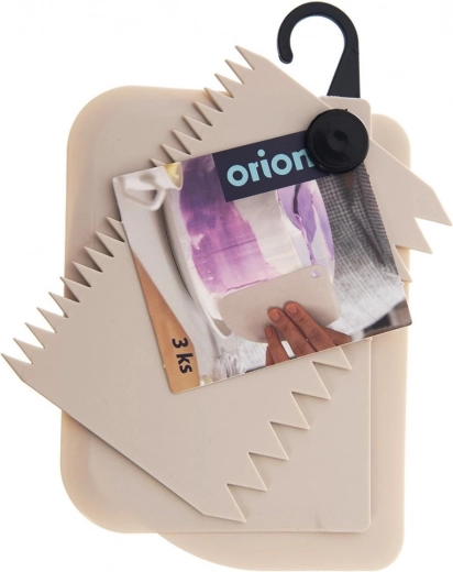 Praktische set van drie banketbakkersspatels voor zowel glad als gestructureerd decoreren van taarten en desserts. Bevat gladde en geribbelde randen voor professioneel gladstrijken van crèmes, het creëren van decoratieve patronen en het eenvoudig uitstrijken van glazuur. Licht, duurzaam materiaal in beige, vaatwasserbestendig en compact samengehouden met een ring voor handig opbergen.