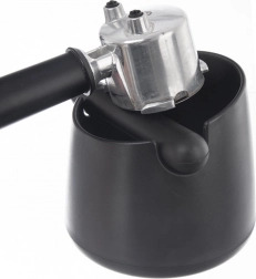 De anti-slip basis met vilten onderlaag houdt de container stevig op zijn plaats, de rubberen stang dempt de klap en beschermt de portafilter.