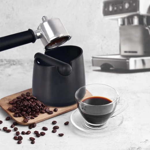 Houd je koffieruimte schoon en georganiseerd. Deze knockbox voor gebruikte koffie vangt comfortabel meerdere pucks op, zodat je niet steeds naar de afvalbak hoeft te lopen. Robuuste kunststof in elegante zwarte kleur, een afneembare rubberen stang en eenvoudig onderhoud maken hem tot de ideale aanvulling op een halfautomatische espressomachine met portafilter.