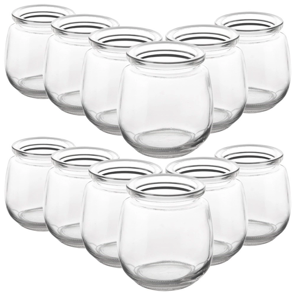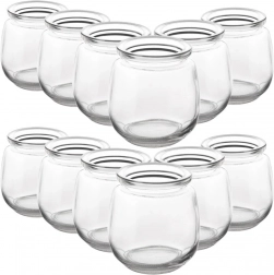 Elegante glazen potjes met een inhoud van 200 ml in een praktische set van 12 stuks, ideaal voor het serveren van yoghurt, desserts, zelfgemaakte confituren of kleine lekkernijen. Gemaakt van helder, dik glas voor een lange levensduur, met een wijde opening voor eenvoudig vullen en reinigen. Geschikt voor de vaatwasser, koelkast en vriezer (tot +80 °C).