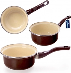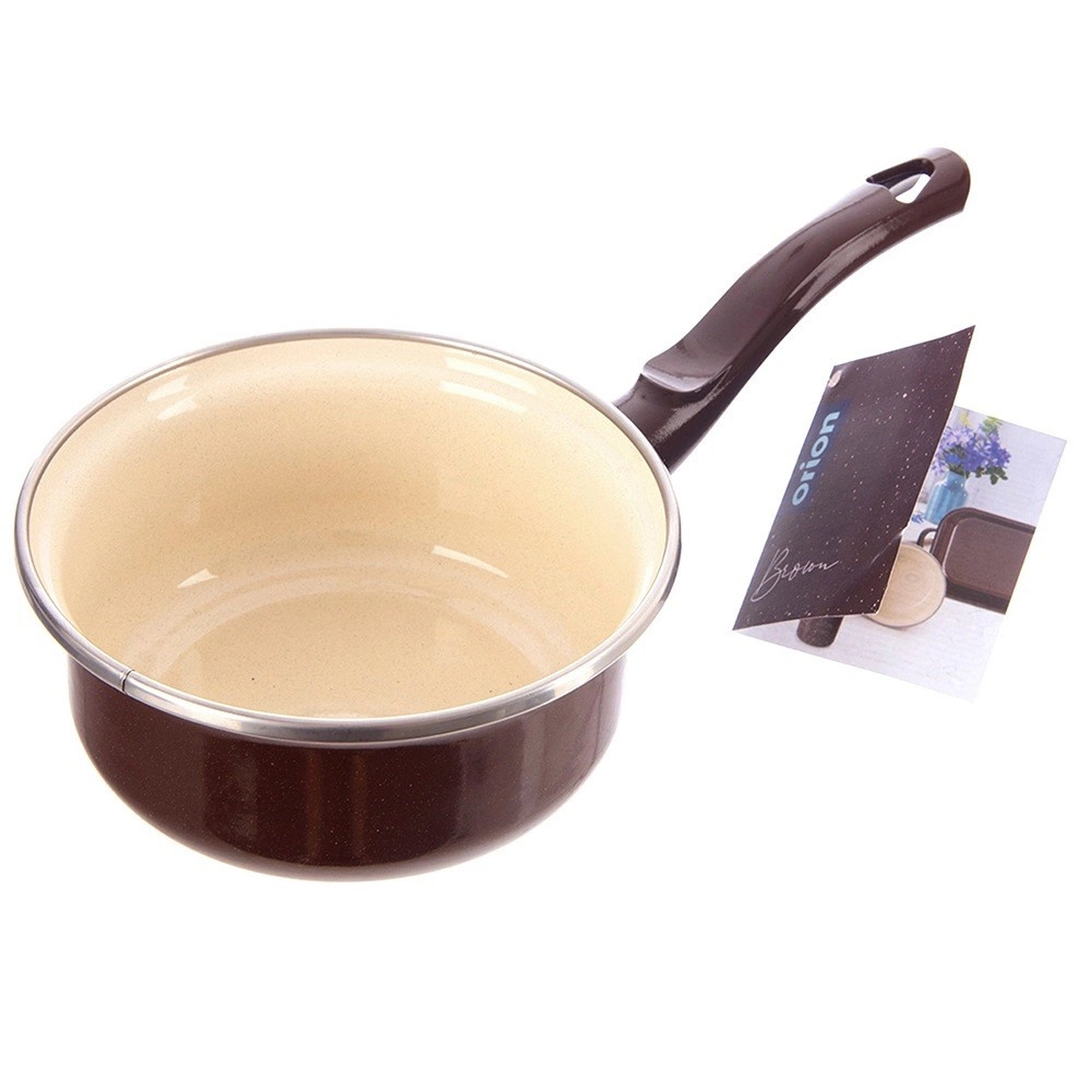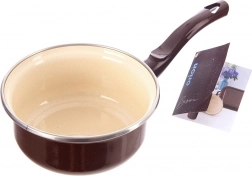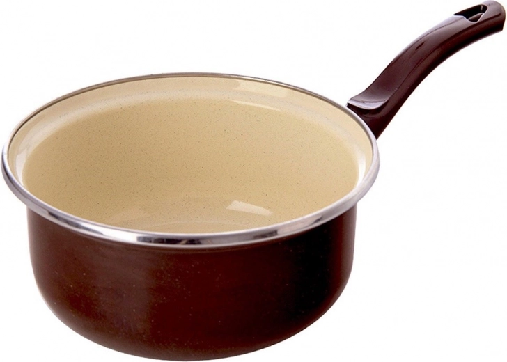 Het stijlvolle steelpannetje BROWN combineert een traditionele look met moderne functionaliteit. De behuizing van hoogwaardig staal met geëmailleerde afwerking zorgt voor een lange levensduur, eenvoudige reiniging en veilig contact met voedsel, ook geschikt voor mensen met allergieën. De crèmekleurige binnenkant en de bruine buitenkant worden aangevuld met een roestvrijstalen rand voor schoon schenken.