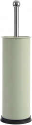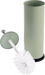 Praktische en duurzame set voor dagelijks wc-onderhoud. De houder heeft een kwalitatieve metalen behuizing in trendy pastelgroen, een borstelhouder van roestvrij staal en dichte witte haren die ook moeilijk bereikbare plekken effectief reinigen. Het gesloten design verbergt de borstel en helpt de badkamer schoon en verzorgd te houden.