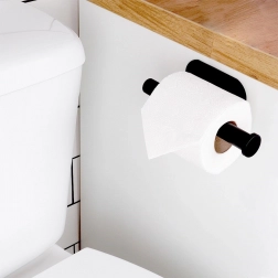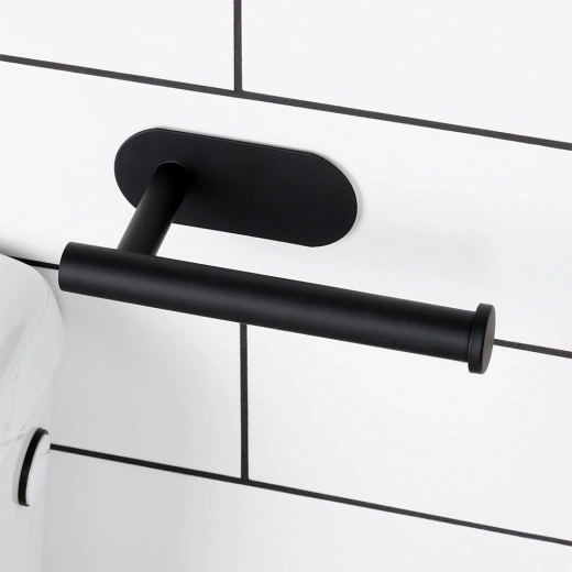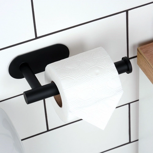 De installatie is maximaal eenvoudig – je bevestigt de houder op tegels, een geschilderde muur of een ander glad oppervlak met de meegeleverde dubbelzijdige tape, dus zonder boren en zonder rommel. De elegante vorm met einddop tegen wegglijden houdt de rol altijd op zijn plaats en binnen handbereik.