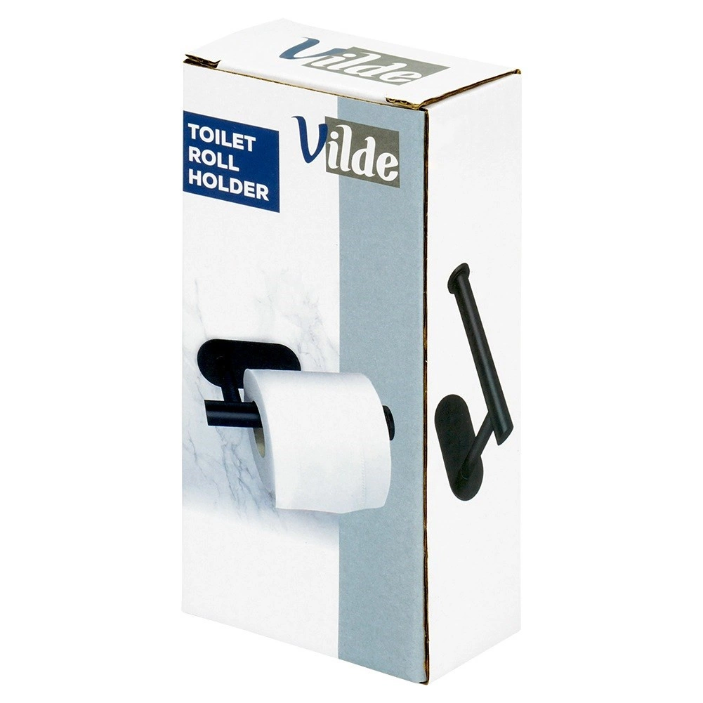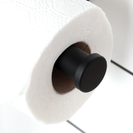 De minimalistische toiletpapierhouder in matzwart vult zowel moderne als klassieke badkamers prachtig aan. Hoogwaardig roestvrij staal zorgt voor een lange levensduur en weerstand tegen vocht, terwijl het open uiteinde van de arm snelle en gemakkelijke vervanging van de rol mogelijk maakt.