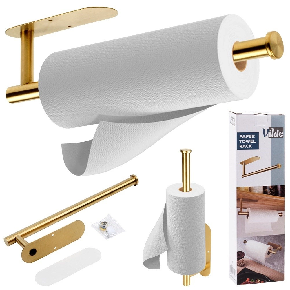 Maak koken en schoonmaken makkelijker met de praktische Vilde keukenrolhouder. Het minimalistische design met geborstelde gouden afwerking past in zowel moderne als klassieke interieurs van keuken, badkamer of kantoor. Roestvrij staal zorgt voor vochtbestendigheid en een lange levensduur.