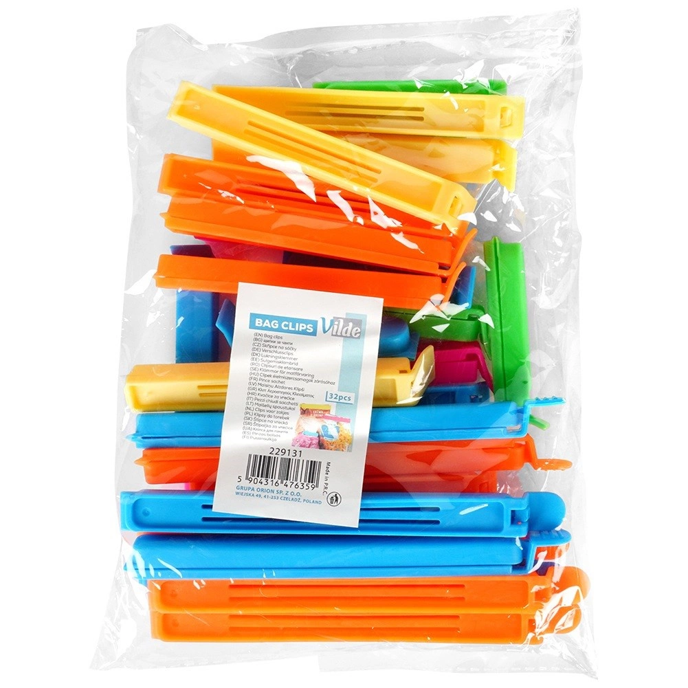 In de verpakking zitten 32 clips: 8× 15,5 × 1,5 cm, 8× 11 × 1,5 cm, 8× 9 × 1,5 cm en 8× 7 × 1,5 cm. Geschikt voor kleine en grote voedselverpakkingen.