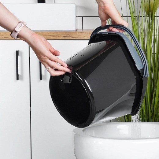 Hoogwaardige kunststof in zwart met grijze handgreep en wringer garandeert een lange levensduur en gemakkelijk dragen.