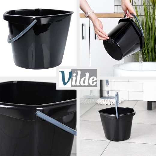 Universele zwarte emmer van hoogwaardig kunststof biedt een uitstekende balans tussen sterkte en laag gewicht. Geschikt voor in huis, de tuin en de garage. De brede rand en de gevormde tuit zorgen voor comfortabel vullen en gecontroleerd uitgieten van vloeistoffen.