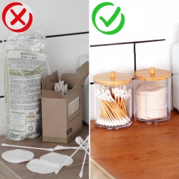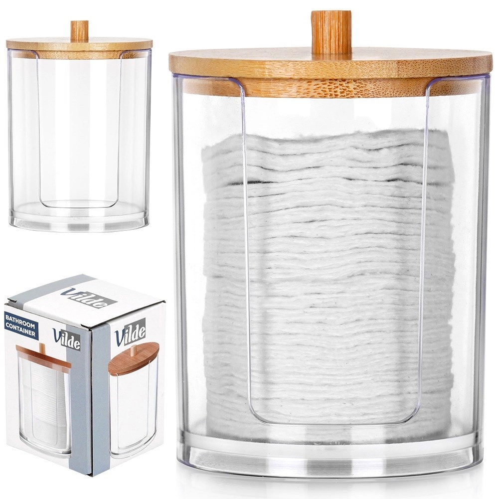 Het natuurlijke bamboe deksel met comfortabele greep beschermt watjes tegen stof en vocht en vult tegelijk de moderne uitstraling van je badkamer aan.