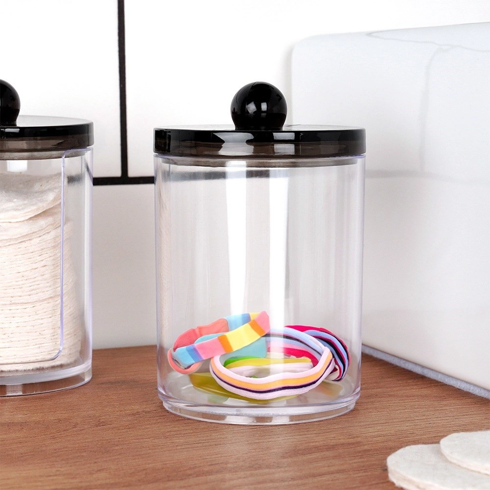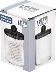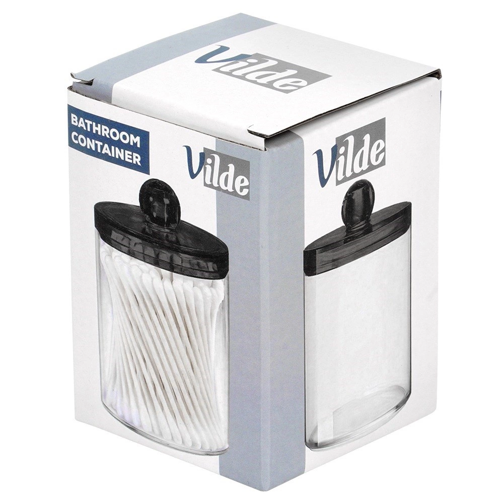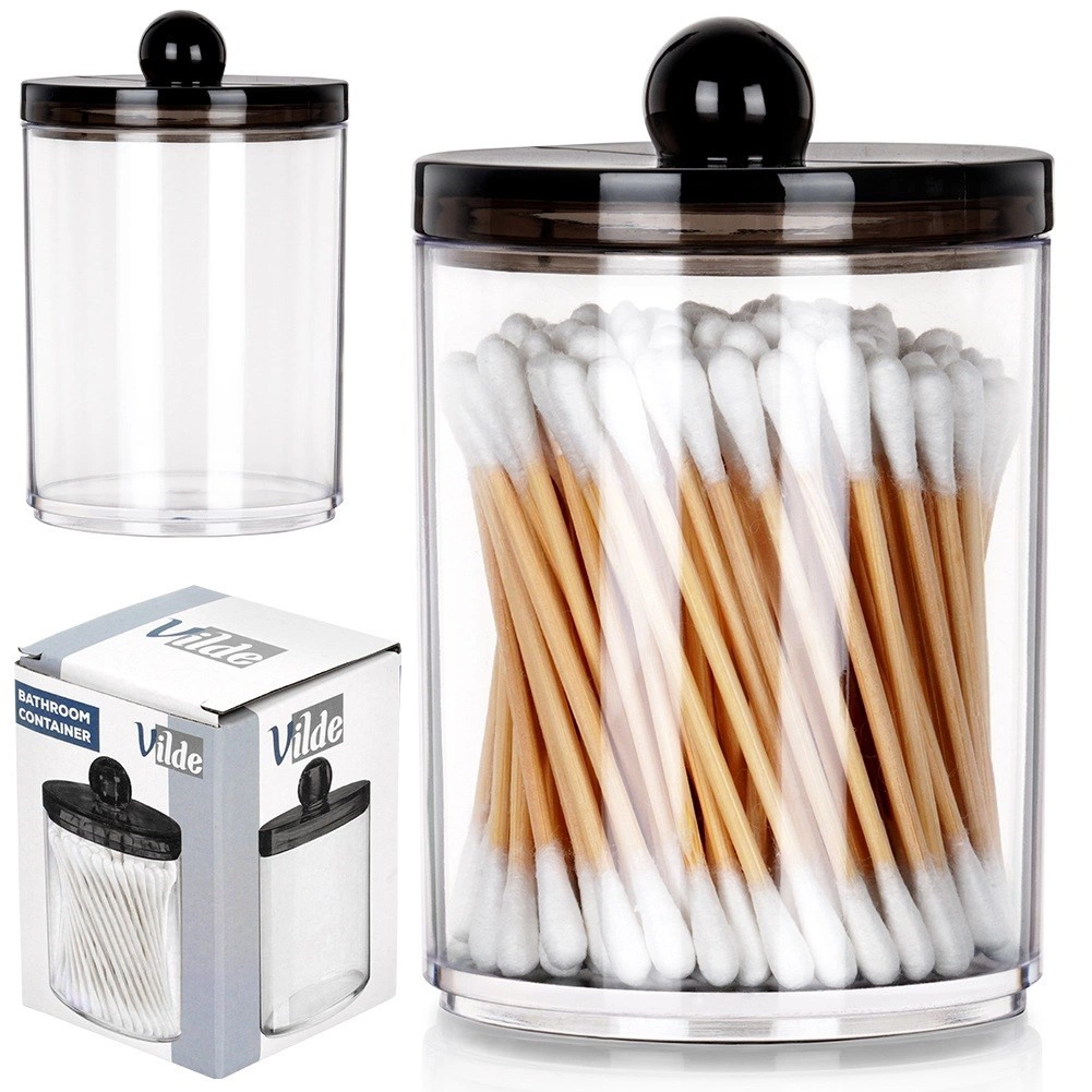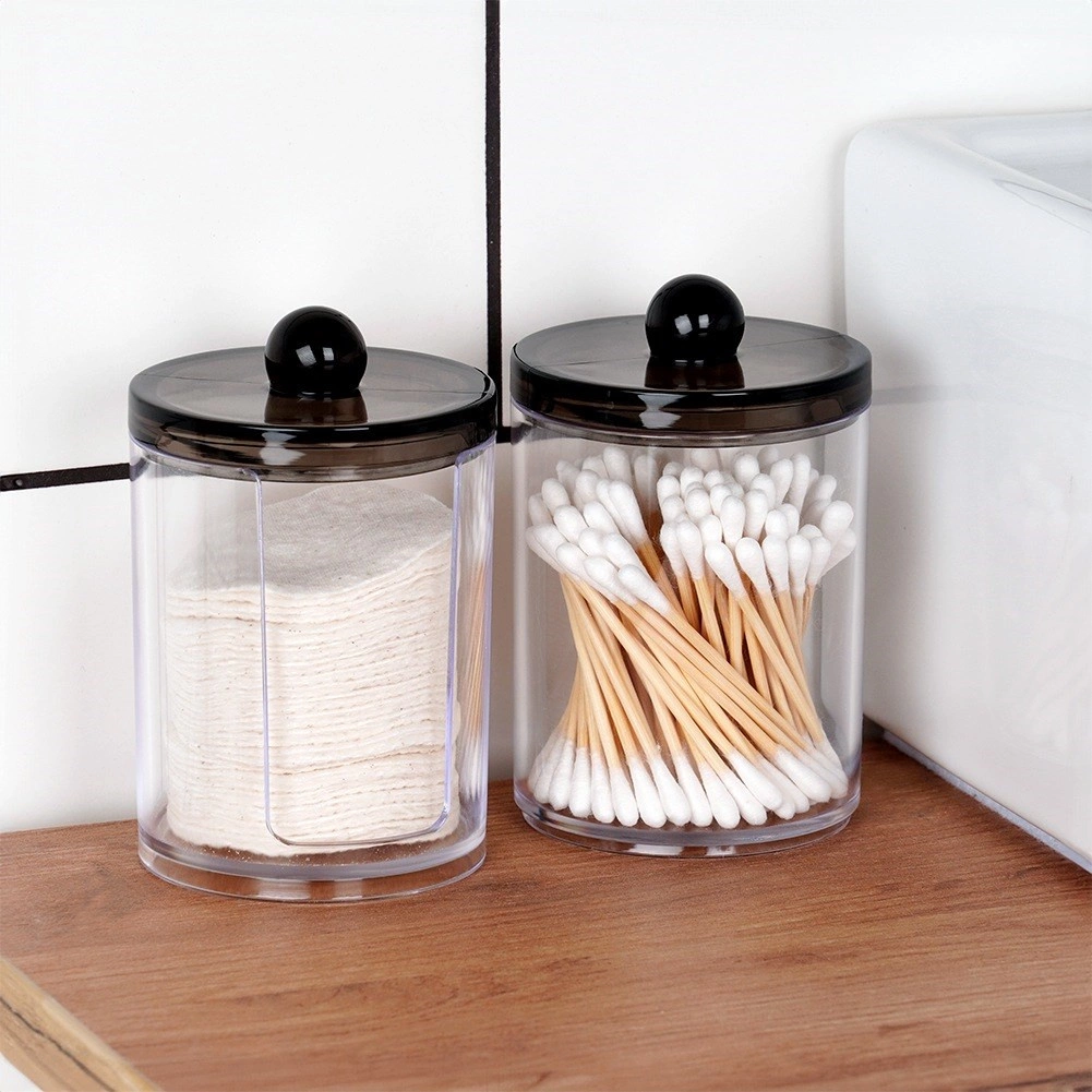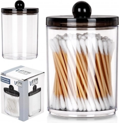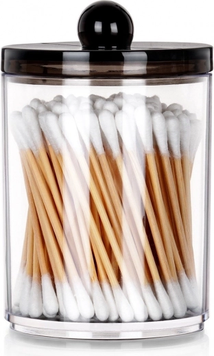 Houd cosmetische kleinigheden overzichtelijk bij elkaar. Deze transparante acrylhouder is ideaal voor wattenstaafjes of cosmetische wattenschijfjes. Het minimalistische design met zwart deksel past in elke moderne badkamer en beschermt bovendien de inhoud tegen stof.