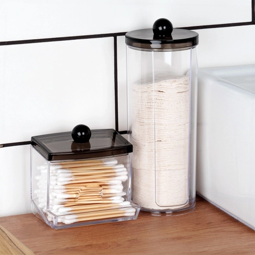 Deze elegante organizer voor wattenschijfjes van helder acryl combineert een strakke look met hoge functionaliteit. Transparante wanden maken directe controle van de inhoud mogelijk, terwijl het deksel met greep de wattenschijfjes schoon en beschermd tegen stof houdt.