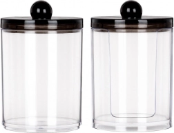 Het minimalistische ontwerp in helder en zwart past perfect op het wastafelblad, kaptafeltje of in de kast. De brede opening maakt snel bijvullen gemakkelijk; licht en duurzaam acryl zorgt voor eenvoudig onderhoud en een lange levensduur.