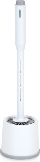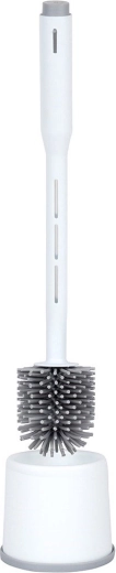 De dichte siliconen haren verwijderen effectief vuil en kalkaanslag zonder het oppervlak van de pot te krassen. De geventileerde houder met antislip bodem houdt de borstel rechtop, versnelt het drogen en zorgt voor maximale hygiëne en een nette uitstraling in kleine badkamers.