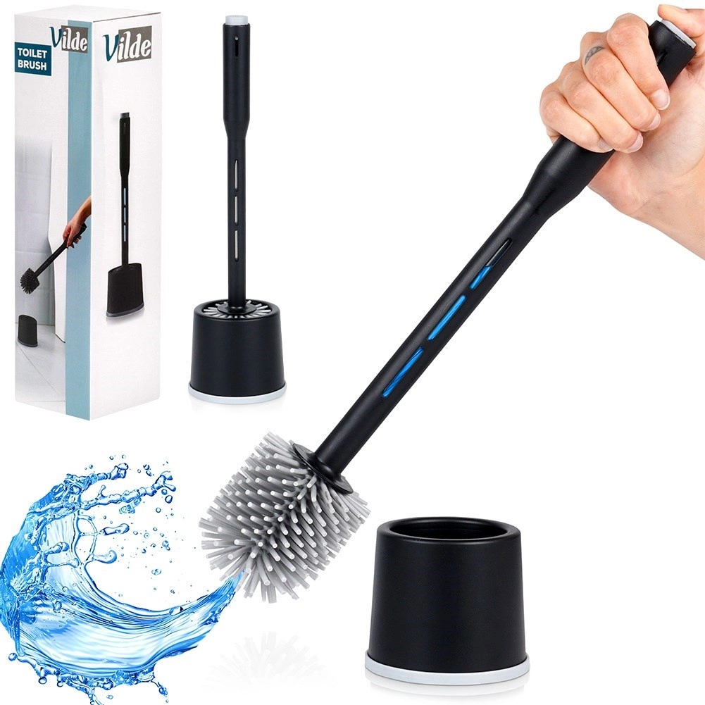 Deze moderne WC-borstel combineert een duurzame siliconen kop met een verborgen dispenser in het handvat, zodat u het reinigingsmiddel altijd bij de hand hebt. De siliconen borstelharen spoelen gemakkelijk schoon, drogen snel en zijn hygiënisch – ze nemen geen vuil of geuren op.