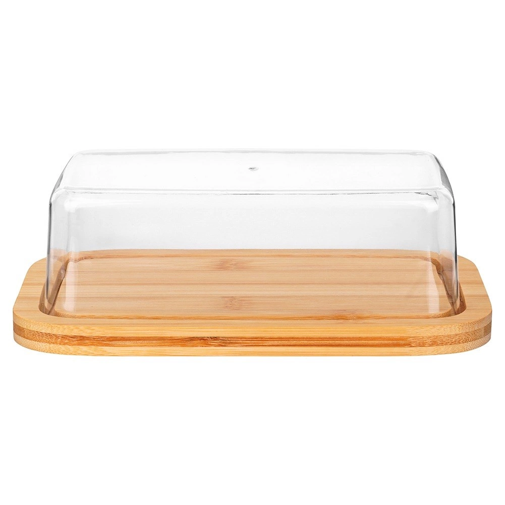 Deze praktische botervloot combineert natuurlijke bamboe en een doorzichtig deksel voor moderne en hygiënische opslag van boter in de koelkast en stijlvol serveren aan tafel. Dankzij het heldere deksel zie je altijd de inhoud, terwijl de nauwkeurige passing helpt de boter langer vers te houden.