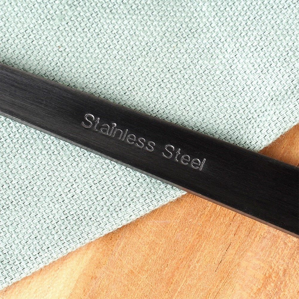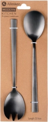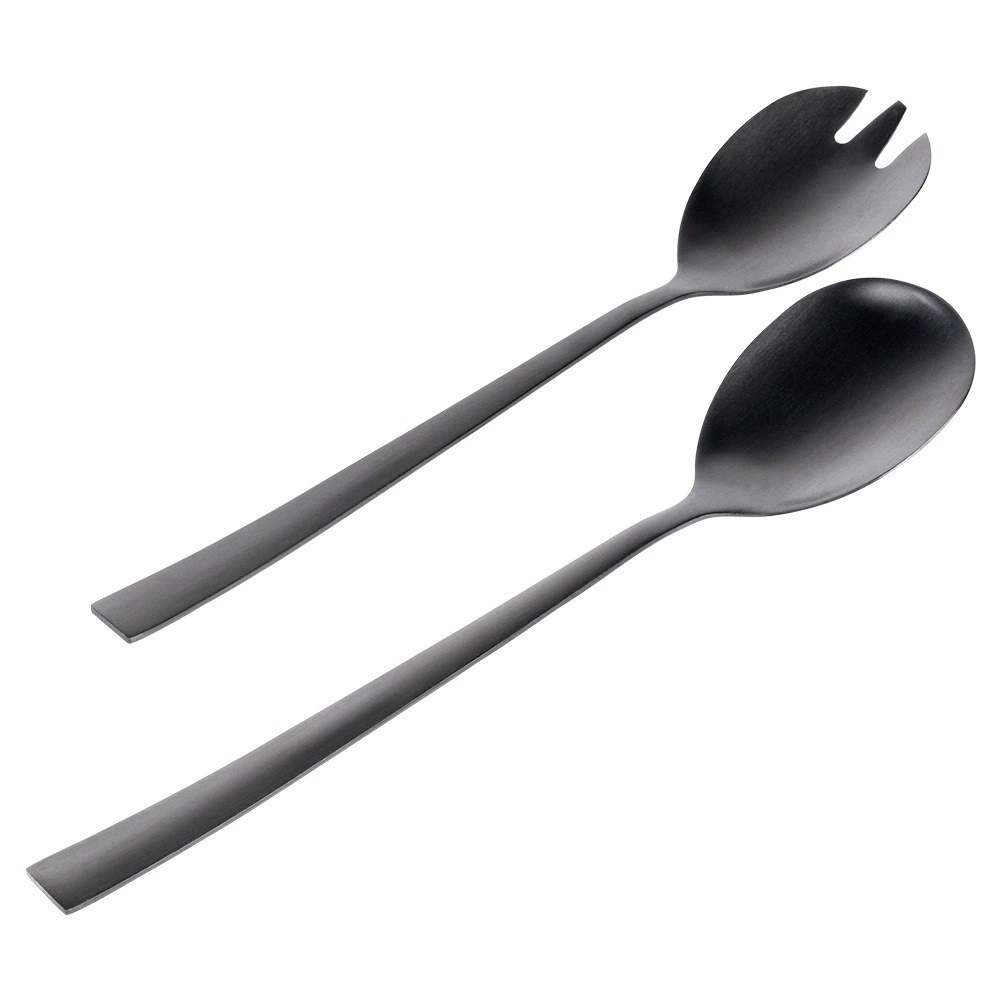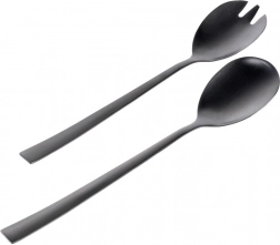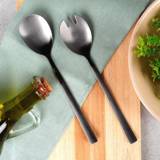 De set van twee saladeserveerlepels is gemaakt van duurzaam roestvrij staal in zwart met een subtiel satijneffect. Biedt de perfecte balans tussen een moderne look en praktisch gebruik – ideaal voor diepere schalen en saladeschalen.