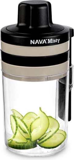 De scherpe messen van roestvrij staal zorgen voor precieze en langdurige prestaties, terwijl de kunststof behuizing licht en duurzaam is. Het apparaat heeft afmetingen van 11 × 9 × 20 cm, is comfortabel handmatig van bovenaf te bedienen en voor gemakkelijk onderhoud geschikt voor de vaatwasser. Het originele NAVA-product uit de MISTY-lijn voldoet aan Europese normen.