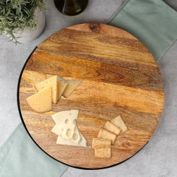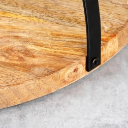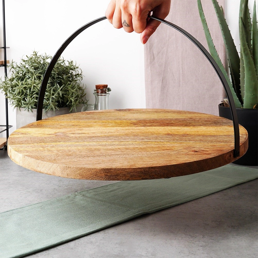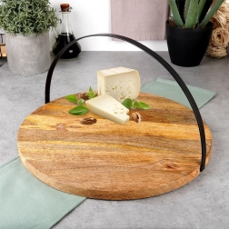De elegante combinatie van natuurlijk mangohout en zwart metaal zorgt voor duurzaamheid en een tijdloze look. De plank is perfect voor het serveren van voorgerechten, kazen, vleeswaren, desserts en tapas en is tegelijk een stijlvolle tafeldecoratie. Het opklapbare handvat maakt het comfortabel om de plank te dragen, op te hangen of plat op te bergen wanneer deze niet in gebruik is.