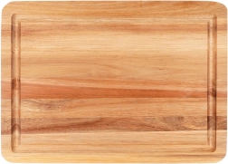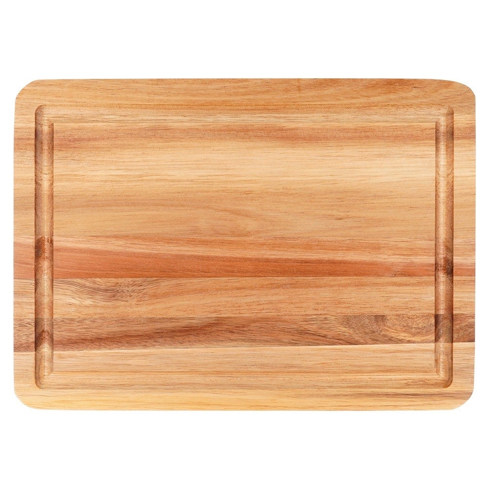 Geef je keuken een natuurlijke stijl en functionaliteit. Deze plank van hoogwaardig acaciahout is duurzaam, hard en antibacterieel, dus perfect voor dagelijks snijden van vlees, groenten en brood. De diepe, rondomlopende sapgroef vangt sappen op en helpt je werkblad schoon en netjes te houden.
