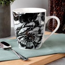 Ontdek stijl en functionaliteit in één. De porseleinen mok ELLIE van hoogwaardig materiaal valt op door het uitgesproken monochrome bloemenmotief, dat op elke tafel tot zijn recht komt. De vorm met licht toelopende rand en het comfortabele oor zorgen voor plezierig dagelijks gebruik.