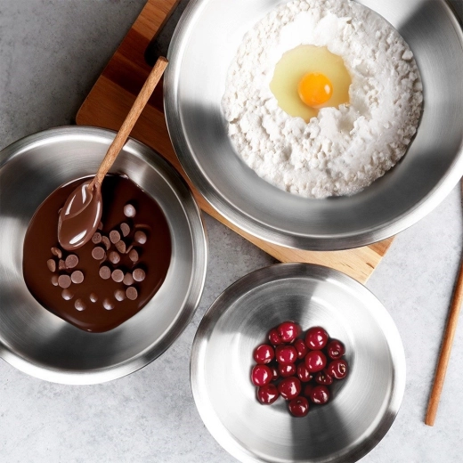 Praktische roestvrijstalen kom met een diameter van 24 cm en een inhoud van 2,8 l met een mat oppervlak, dubbelwandige constructie voor betere thermische isolatie en universele toepassing in zowel de keuken als de gastronomie. Licht en duurzaam uitgevoerd, geschikt voor de vaatwasser, koelkast, vriezer en oven, en ideaal voor mengen, kloppen en stijlvol serveren.