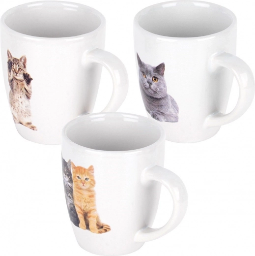 Ontdek een elegante set van 3 keramische mokken met een inhoud van 220 ml, die opvallen door realistische kattenprints en een glanzend wit oppervlak. De klassieke vorm met groot oor biedt een comfortabele grip en prettig dagelijks gebruik.
