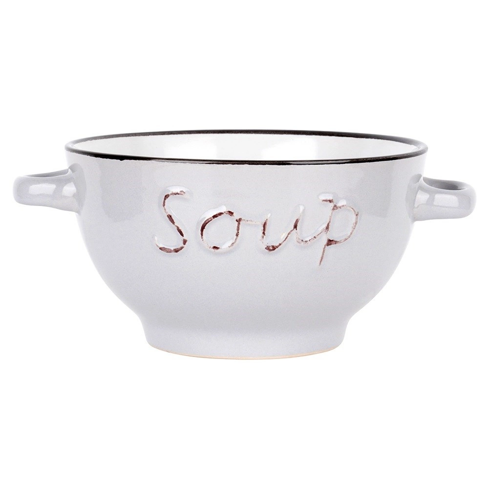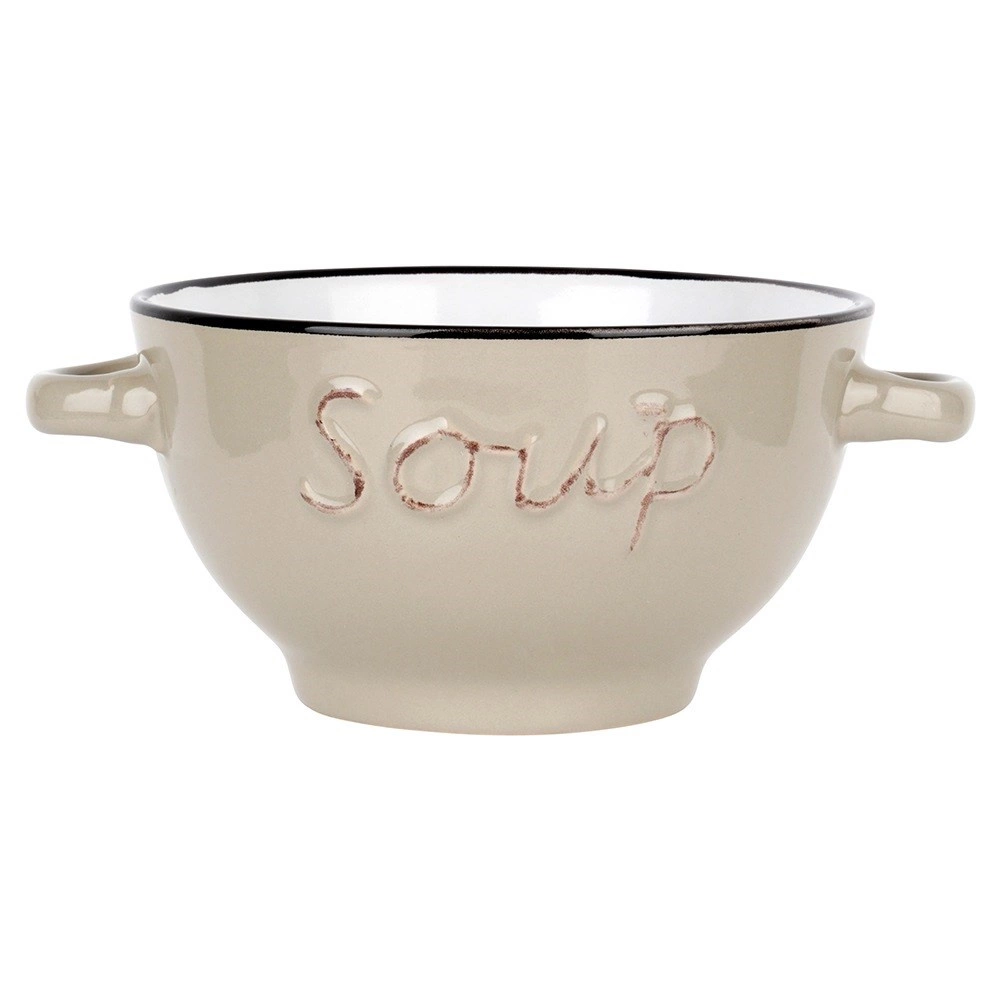 Ontdek een veelzijdige set kommen die perfect is voor soepen, bouillons en crèmes, maar ook voor granen, yoghurt, fruit en snacks. De tijdloze vorm, contrasterende rand en het reliëfopschrift geven je tafelsetting een elegante touch en passen gemakkelijk bij elke keukeninrichting.