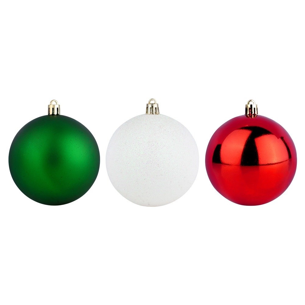 De set combineert glanzende, matte en glitterafwerkingen in rood, groen en wit. Zo creëer je een harmonieuze en sprankelende feestdecoratie.