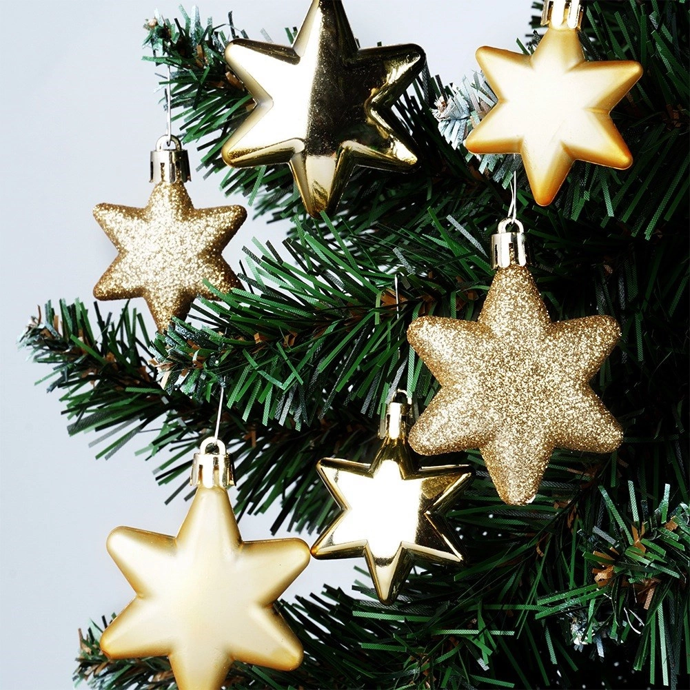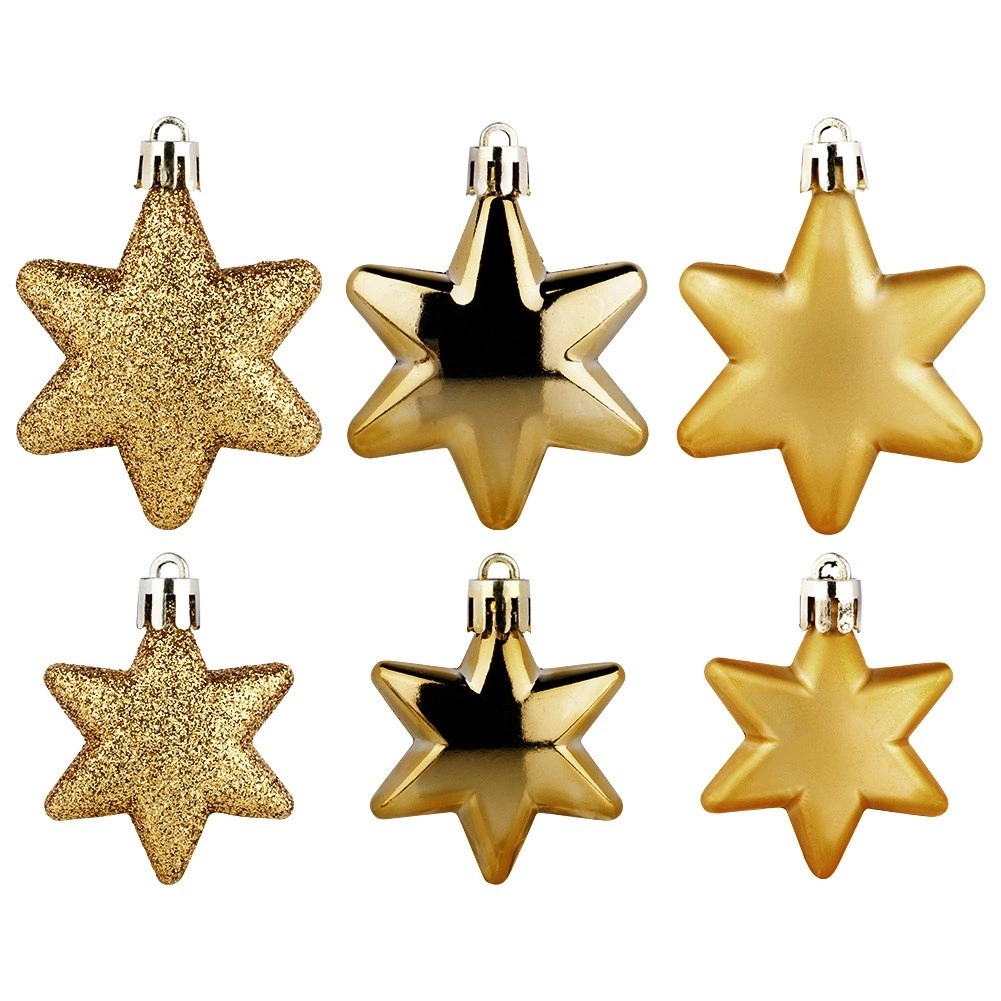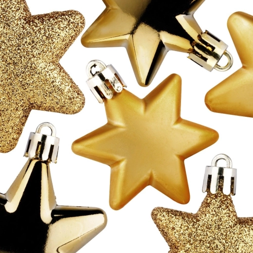 Deze stijlvolle set sterren brengt klassieke gouden glans in een moderne en veilige uitvoering. De formaten 5 cm en 6 cm zorgen voor een harmonieuze gelaagdheid in bomen, kransen en guirlandes. De combinatie van glanzende, matte en glitter afwerking geeft decoraties diepte en een feestelijke sfeer.