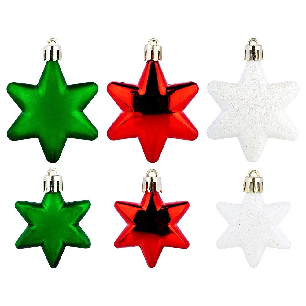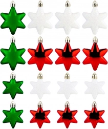 Verrijk je feestdecor met elegante sterretjes die sterk doen denken aan glazen ornamenten, maar dankzij de duurzame kunststof veilig en onbreekbaar zijn. De set van 16 stuks in een harmonische combinatie van rood, groen en wit (inclusief glittervarianten) geeft je interieur stijl en warme kerstsfeer.