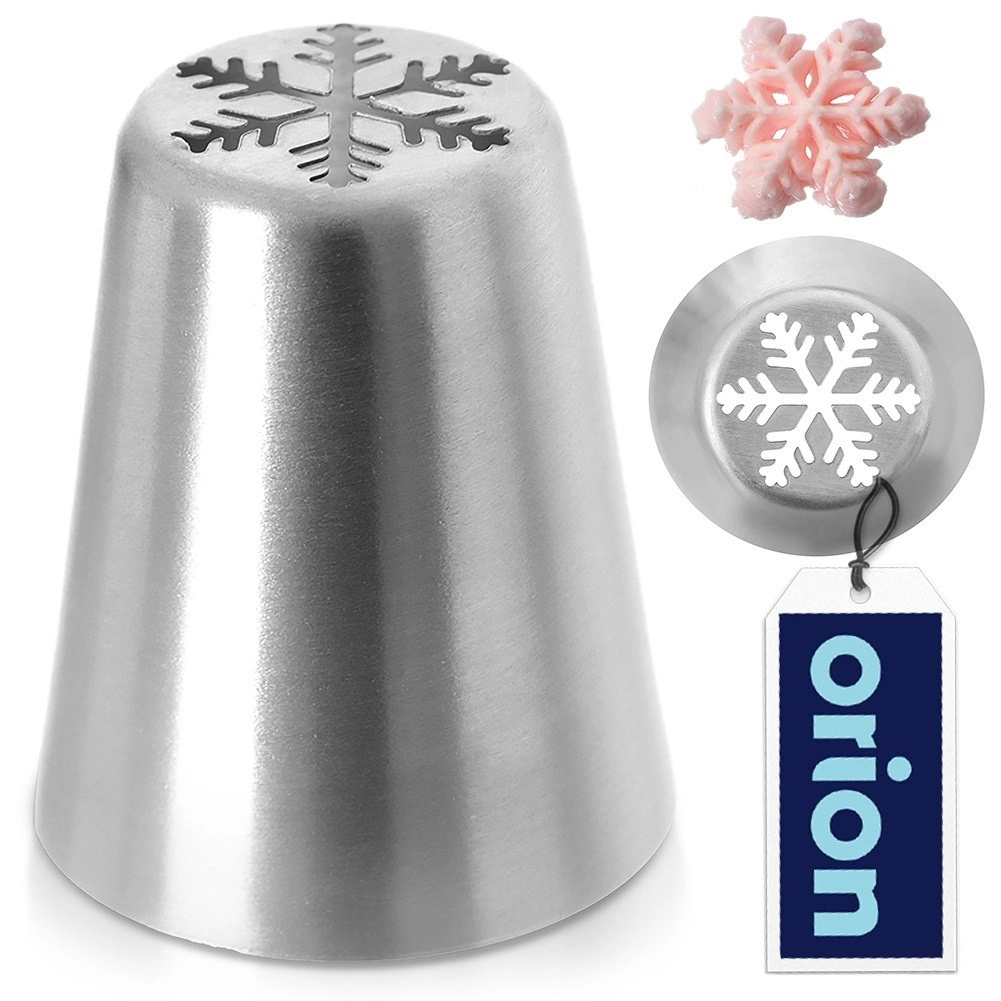 De speciale uitsnede van de spuitmond creëert gedetailleerde vlokken, ideaal voor winterse taarten, koekjes en cupcakes.