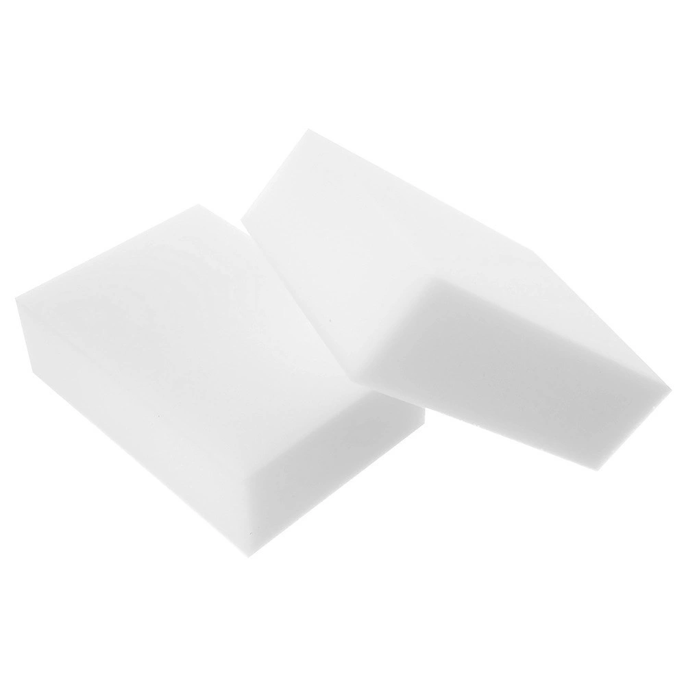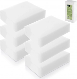 Veelzijdig gebruik in huis: plastic (kozijnen, schakelaars), keramiek (wastafels, tegels), roestvrij staal (spoelbakken, apparaten), glas en gelakte oppervlakken. Werkt ook uitstekend op muren – verwijdert strepen, schoenvegen en tekeningen met potloden of stiften. Elk sponsje: 10 × 7 × 3 cm.
