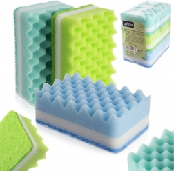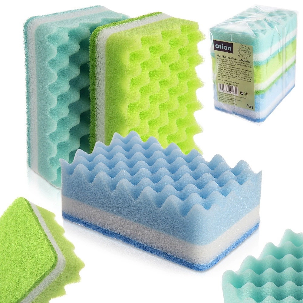 Met deze praktische set van 3 sponsjes reinigt u dagelijks servies, spoelbakken en keukenoppervlakken snel en zorgvuldig. Elk sponsje heeft twee verschillende zijden – een zachte, gegolfde voor delicate oppervlakken en een ruwere, schurende voor het doeltreffend verwijderen van ingedroogd vuil.