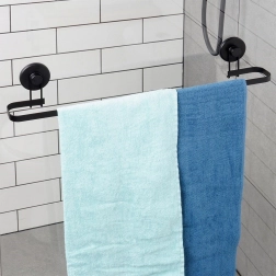Deze minimalistische handdoekhouder in matzwart combineert strak design met dagelijkse functionaliteit. Dankzij de twee grote zuignappen bevestigt u hem eenvoudig en snel op gladde oppervlakken, zoals glas of tegels, zonder te boren – uw muren blijven onbeschadigd.