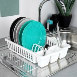 De duurzame kunststof constructie is licht, hygiënisch en gemakkelijk schoon te maken. Het tijdloze ontwerp past in moderne en traditionele keukens en zorgt voor een snelle luchtstroom voor sneller drogen zonder natte plekken op het aanrecht.
