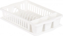 Houd de keuken na het afwassen altijd droog en netjes. Dit compacte afdruiprek in klassieke witte kleur biedt plaats aan tot 10 borden en droogt dankzij de aparte vakken ook bestek en klein keukengerei veilig. Het uitneembare afdruipblad vangt overtollig water op en maakt reinigen eenvoudig.