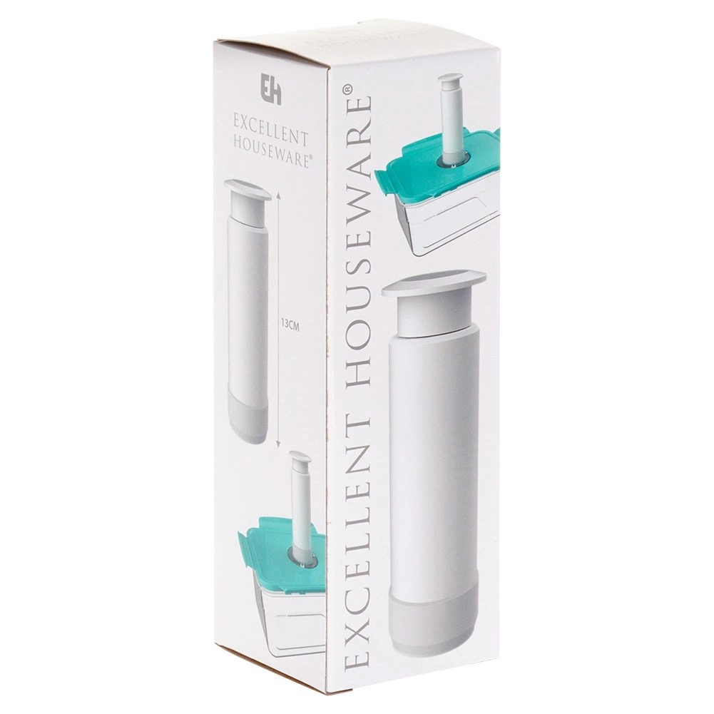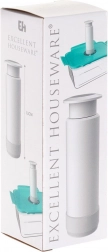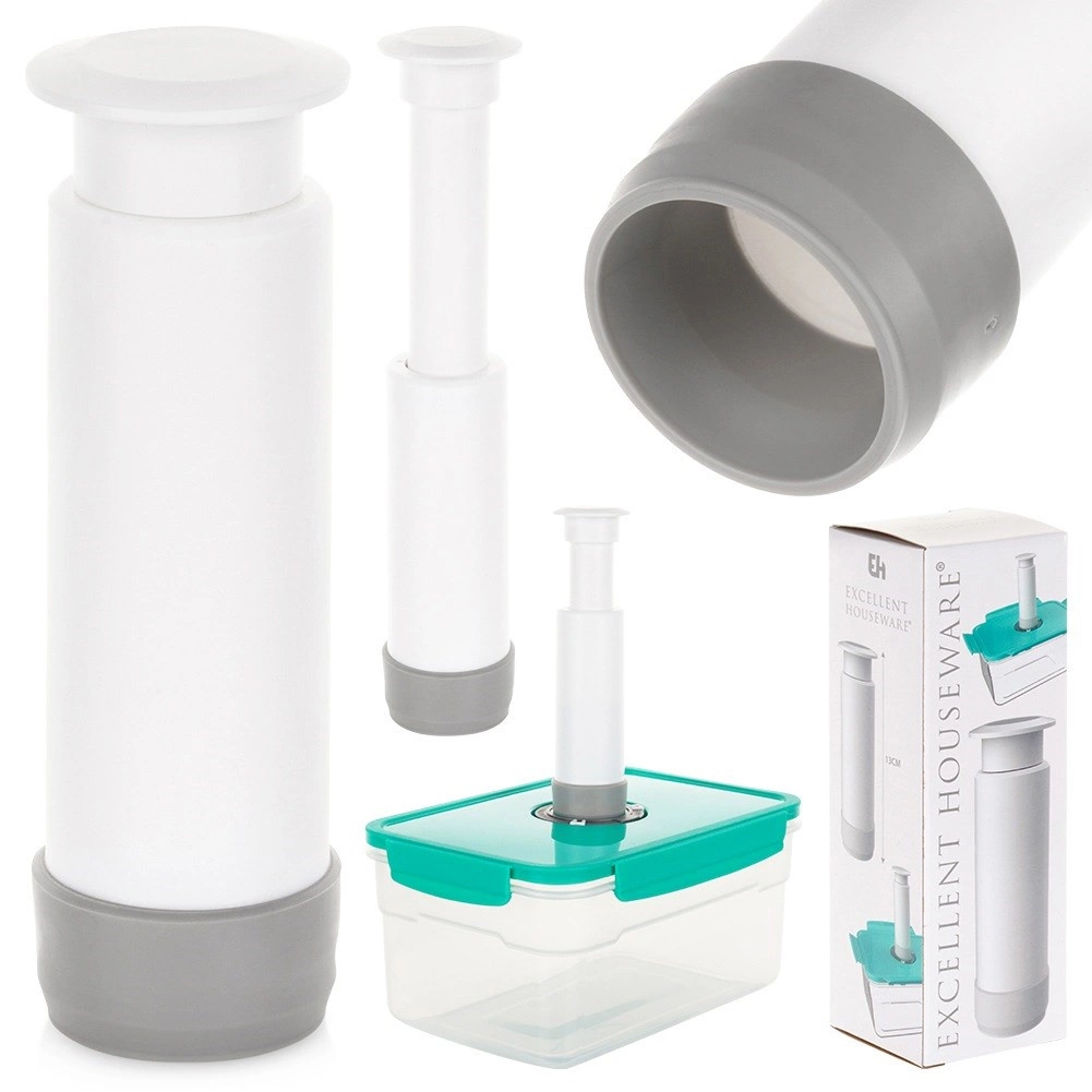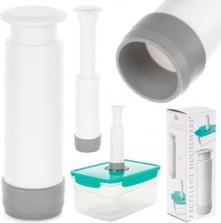 De robuuste uitvoering van hoogwaardige witte kunststof en een grijze rubberen basis voor betere grip garanderen een betrouwbare afdichting en comfortabel gebruik. Dankzij de compacte afmetingen (4 × 13,5 cm) neemt u de pomp overal mee naartoe – geschikt voor in de keuken, op de camping of tijdens reizen.