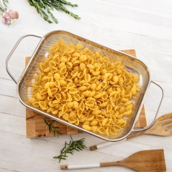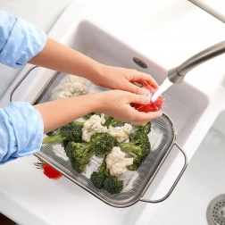 Het fijne gaas voert water effectief af en houdt tegelijk zelfs kleine stukjes voedsel vast – ideaal voor groenten, pasta of rijst.