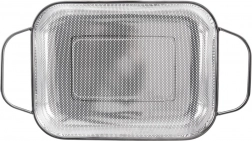 Duurzaam roestvrij staal blinkt uit in lange levensduur, verdraagt hoge temperaturen en dankzij de twee handgrepen is de mand gemakkelijk te dragen.