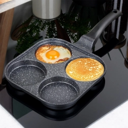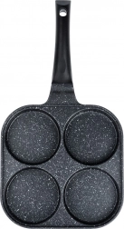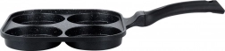 De vierkante pan van 22 × 22 cm met vier afzonderlijke kamers zorgt voor uniforme portiegroottes en een perfecte ontbijtpresentatie. Het aluminium lichaam met een granieten anti-aanbaklaag warmt snel op en verdeelt de warmte uitstekend, zodat je snel, zuinig en zonder aanbranden bakt. De ergonomische, antislipgreep met ophangoog garandeert comfortabel en veilig gebruik.