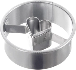 Ronde uitsnede met een strak hartvormig venster voor elegante koekjes met of zonder vulling. Ideaal voor Linzerdeeg en peperkoekdeeg.