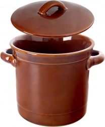 Deze hoogwaardige bruin geglazuurde keramische pot (17 × 14 cm, hoogte 12 cm, met deksel 15 cm) is perfect voor de thuiskok. Dankzij het dichte keramiek houdt hij stabiele omstandigheden voor het fermenteren van groenten, het marineren van kazen of worstjes, evenals voor het bewaren van reuzel, patés of spreads.