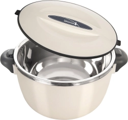 De thermoschaal uit de Thermo-lijn is een geweldige hulp voor dagelijks serveren en transporteren van maaltijden. De roestvrijstalen binneninzet helpt de temperatuur stabiel te houden, terwijl de lichte en duurzame kunststof behuizing zorgt voor een veilige grip en prettig gebruik. Dankzij het draaideksel is sluiten snel en eenvoudig. De schaal is niet 100% lekdicht – houd haar bij transport rechtop.