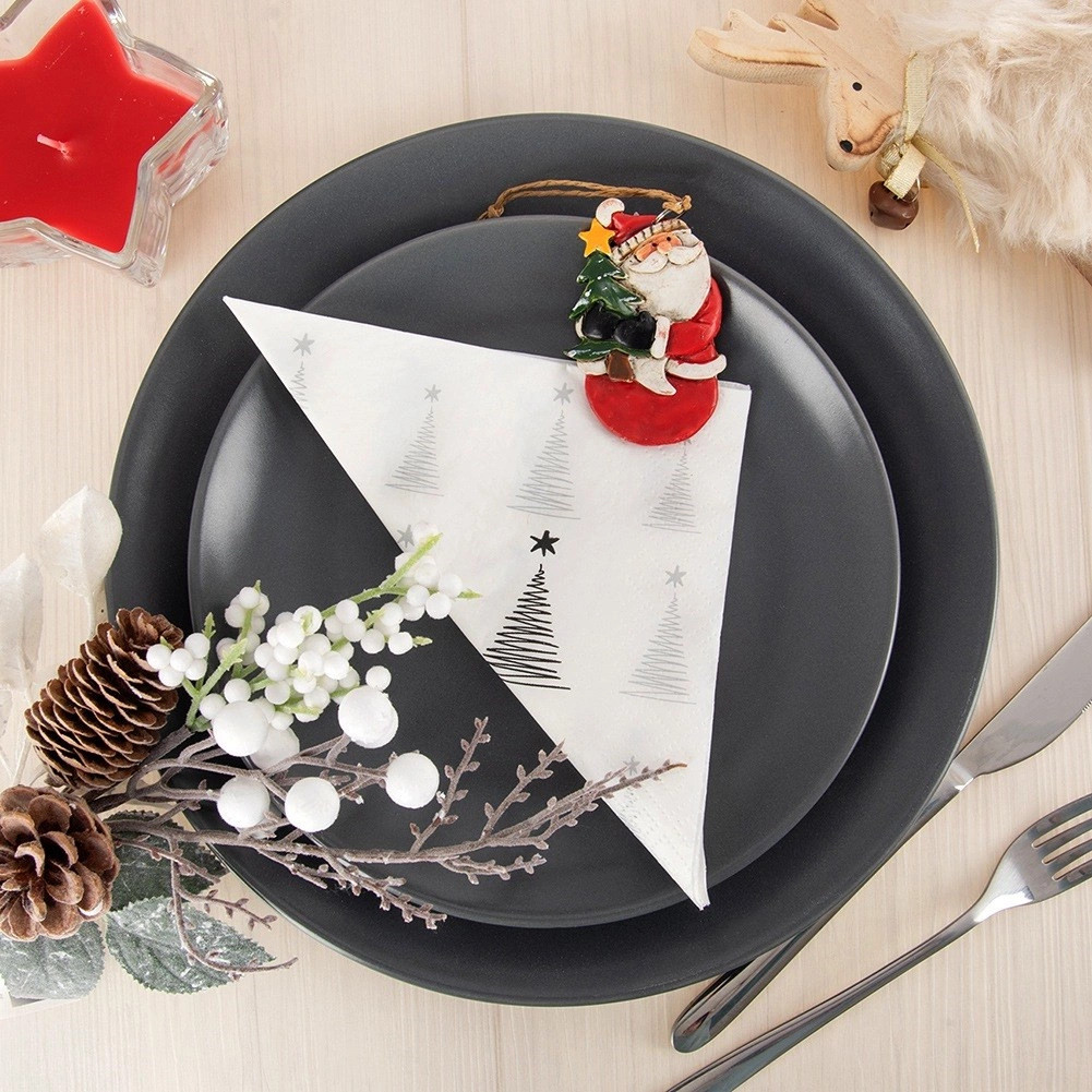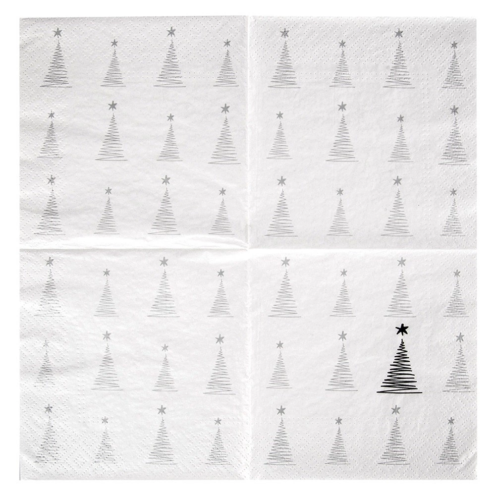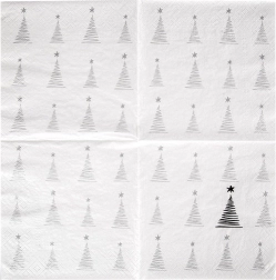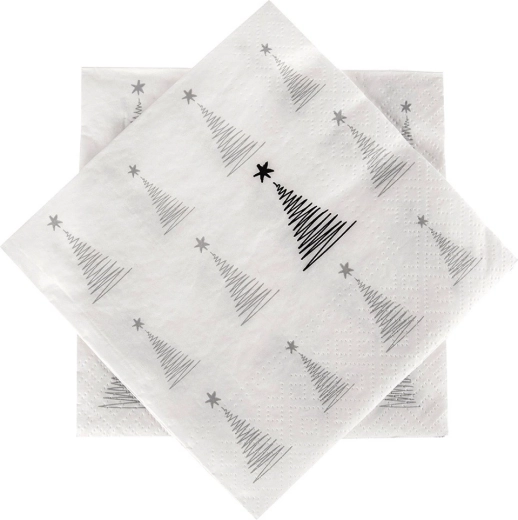 Breng stijl en comfort op de feesttafel met witte papieren servetten met een subtiele print van kerstboompjes. Dankzij de 3-laagse structuur zijn de servetten aangenaam zacht, maar ook stevig en zeer absorberend – perfect voor familiediners, feestjes en bezoek.