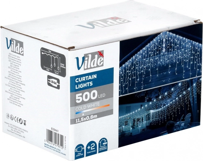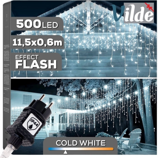 Een stijlvol lichtgordijn met 500 energiezuinige LED’s tovert een betoverende feestdecoratie op de gevel, pergola of in het interieur. Transparante geleiders en verschillende lengtes van de hangende strengen (35, 40, 45 en 60 cm) zorgen voor een realistisch effect van sprankelende ijspegels, met enkele diodes die subtiel knipperen voor een nog indrukwekkendere look.