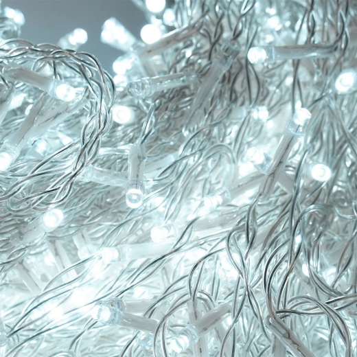 Dankzij IP44 is het gordijn geschikt voor buiten en binnen. De totale lengte van het verlichte deel is 11,5 m, het aansluitsnoer is 1,5 m (samen 13 m), zodat je eenvoudig een stopcontact bereikt. De koudwitte lichtkleur oogt fris en feestelijk – ideaal voor kerstversiering, avondfeestjes en verlichting gedurende het hele seizoen.