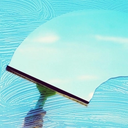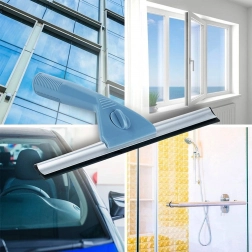 De brede rubberen strip veegt water in één beweging weg en laat het oppervlak perfect schoon en glanzend achter.