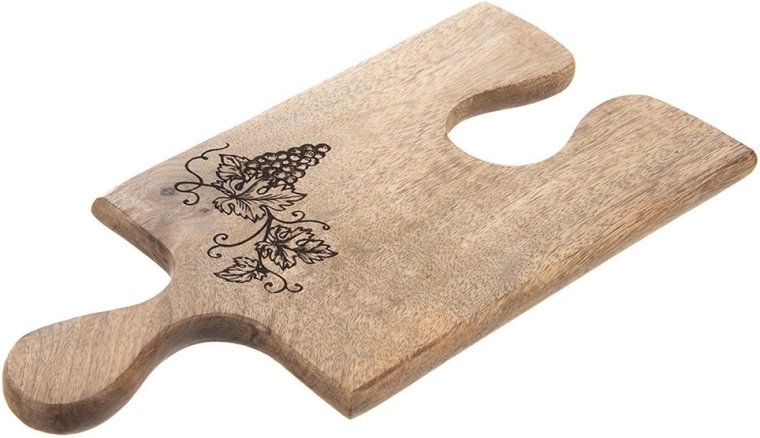 De plank is ideaal voor kazen, vleeswaren, fruit en tapas. Het ergonomische oog voor gemakkelijk dragen en het decoratieve gegraveerde motief van een wijnrank onderstrepen de elegante uitstraling op tafel.