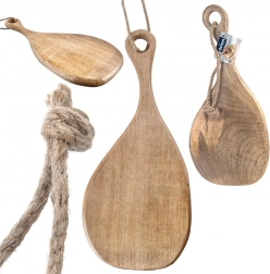 Dankzij het ergonomische handvat is de plank comfortabel te dragen; de opening met koordje maakt eenvoudig ophangen mogelijk en bespaart ruimte. Het gladde, fijn geschuurde oppervlak beschermt het werkblad tegen krassen en accentueert de natuurlijke houttextuur.