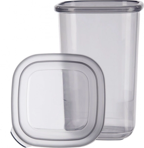 Breng orde in je voorraadkast en keukenkastjes. Deze hoge voorraadbus met een inhoud van 450 ml is ideaal voor koffie, noten, pasta, peulvruchten, ontbijtgranen, gedroogde paddenstoelen en andere droge levensmiddelen. De transparante body in een grijze tint oogt modern en maakt direct inzicht in de voorraad mogelijk.
